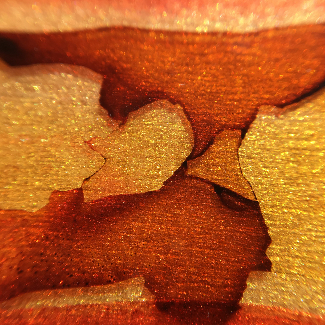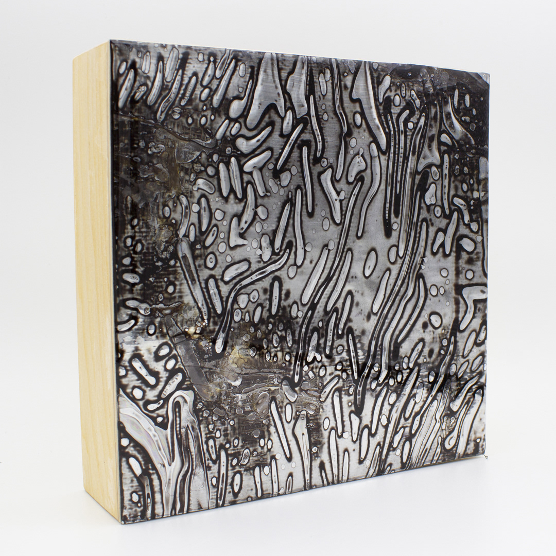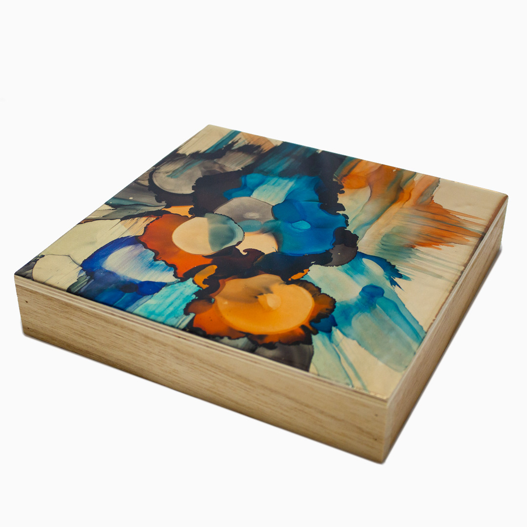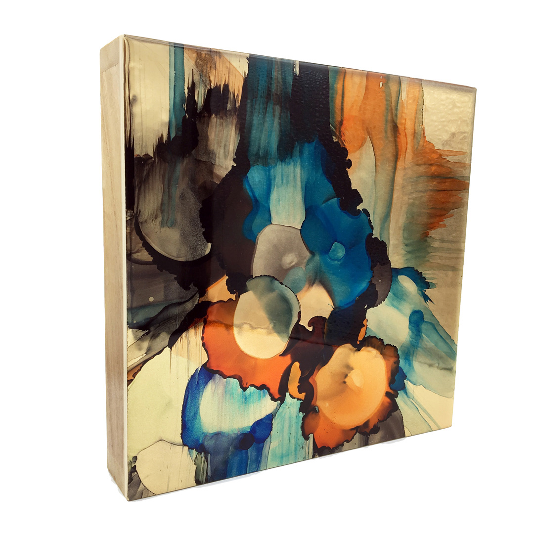 All Paintings are made from Resin, Acrylics & Inks. Paintings can be composed of several paint or resin layers (some have up to 8 layers). All paintings are mounted on 1.5 inch Wooden Cradle Board and ready to hang. Below are a few samples of how each painting will look like from the side, from the top/bottom and from close-up.