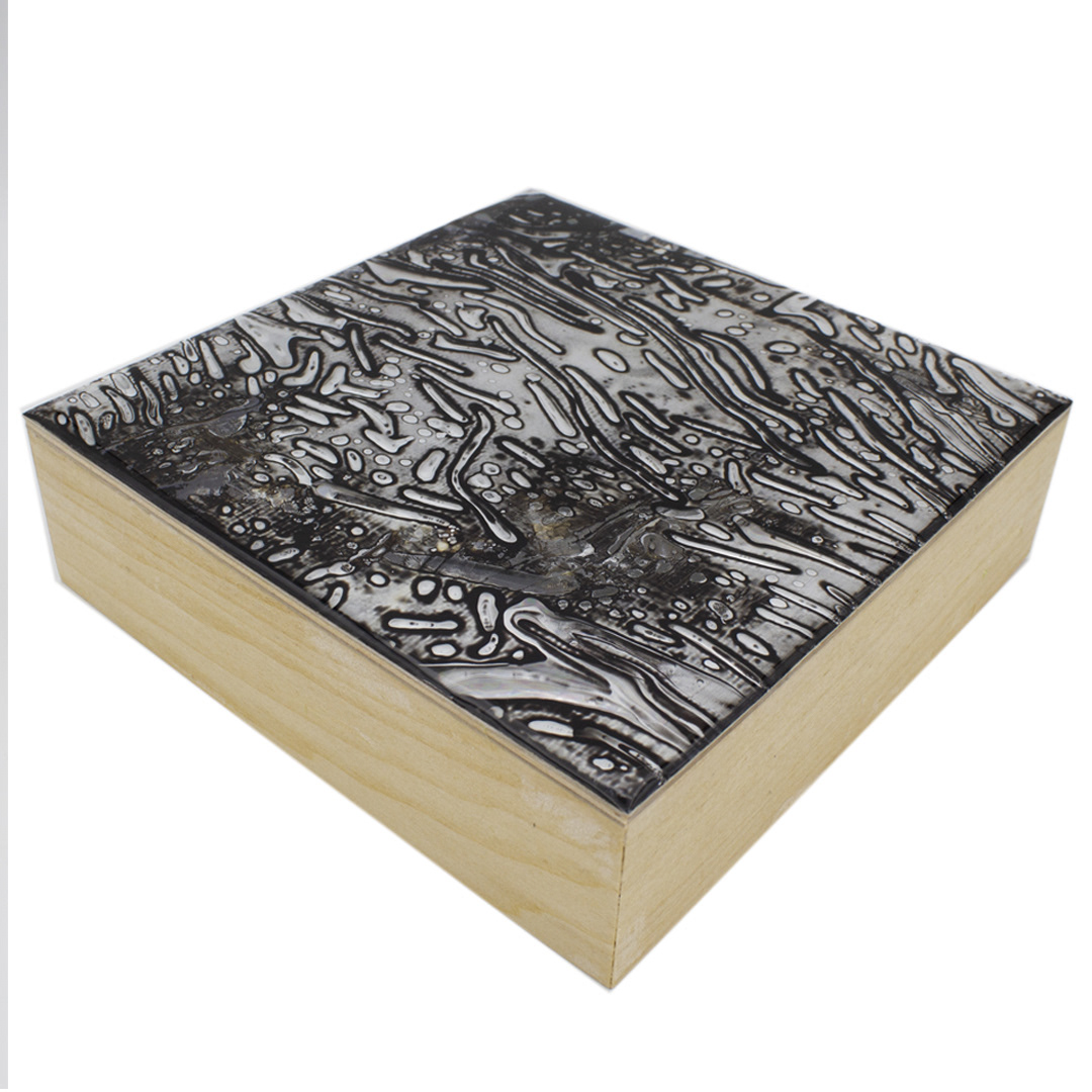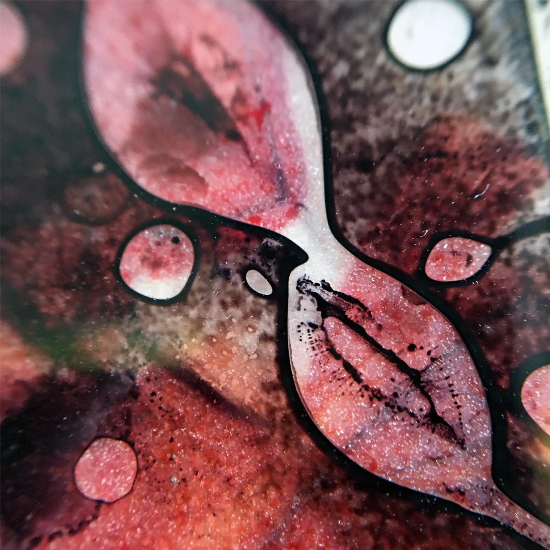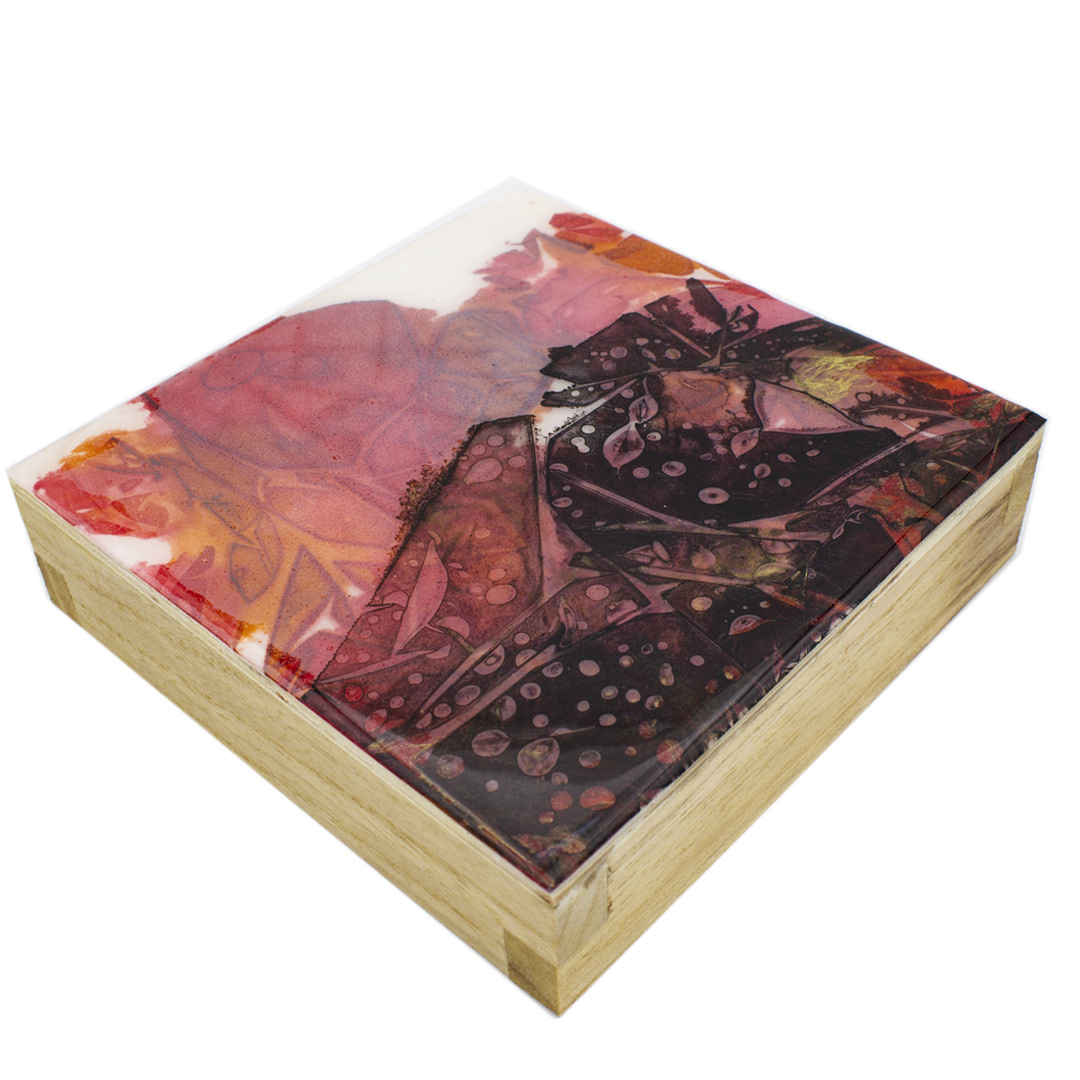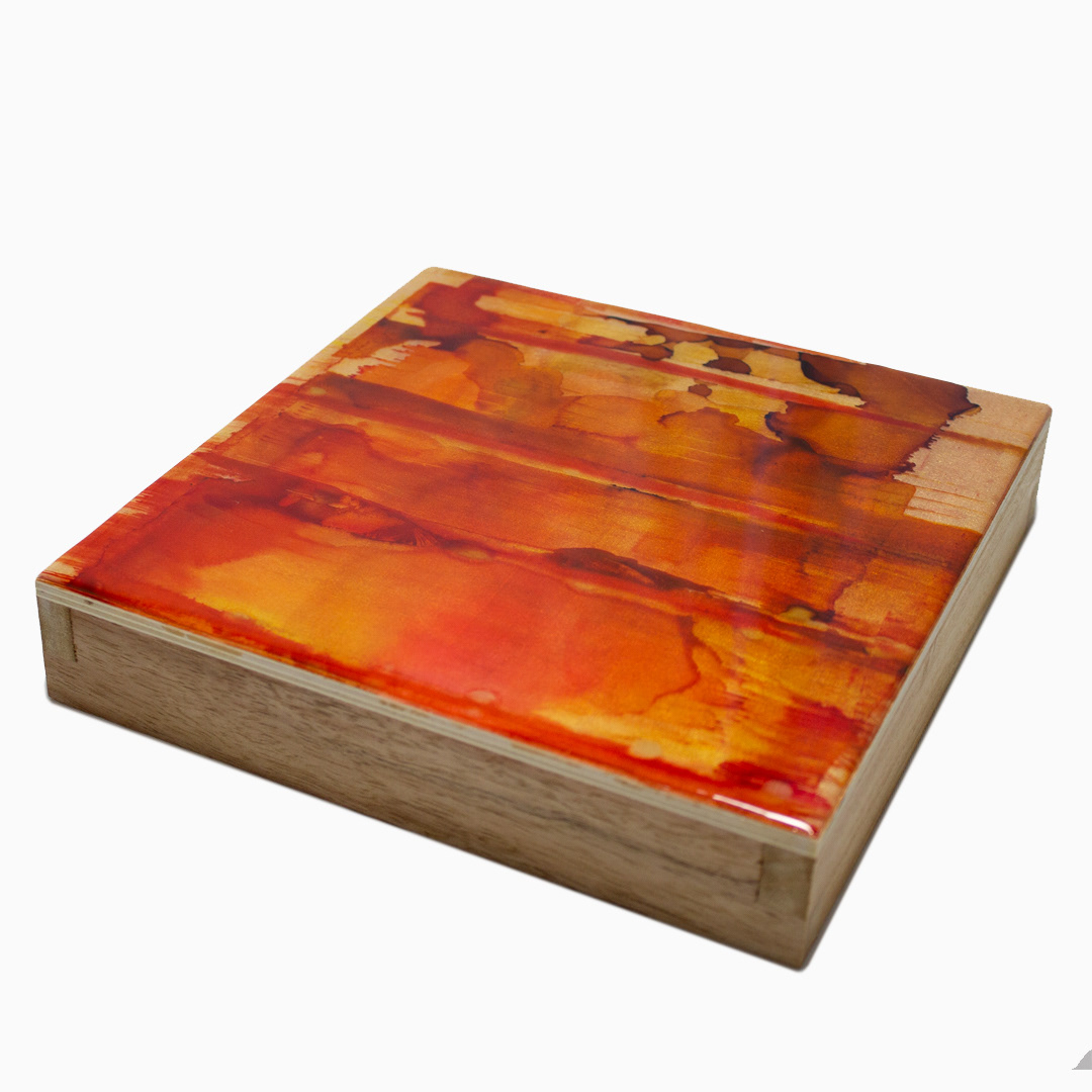 All Paintings are made from Resin, Acrylics & Inks. Paintings can be composed of several paint or resin layers (some have up to 8 layers). All paintings are mounted on 1.5 inch Wooden Cradle Board and ready to hang. Below are a few samples of how each painting will look like from the side, from the top/bottom and from close-up.